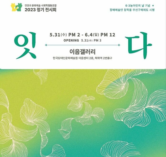 [더인디고] 인권과 문화예술 사회적협동조합(이사장 이정자)이 오는 31일부터 내달 4일까지 한국장애인문화예술원 이음갤러리에서 정기전시회 ‘잇다’를 개최한다.