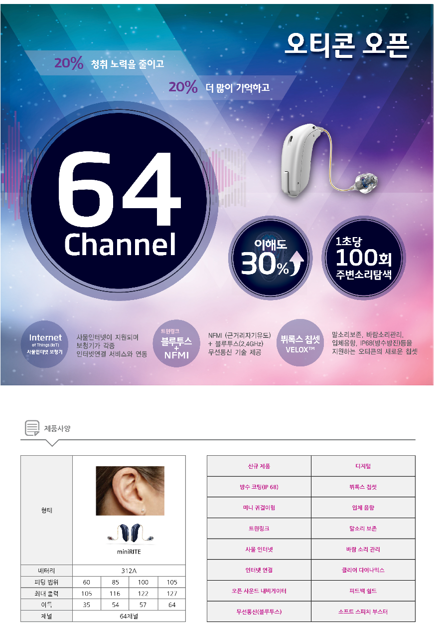 새로이 도입된 뷔룩스(Velox) 칩셋은 오티콘의 브레인 히어링 기술력을 지원함.
