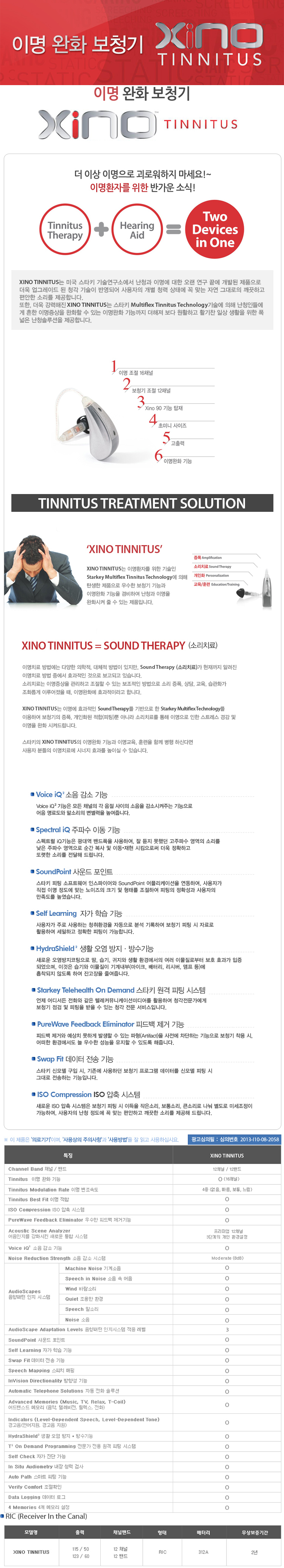 • 타입 : 오픈형 (RIC) – 이명 완화 보청기 (Tinnius)